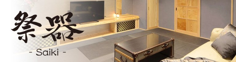 HALOのアンティークモダンの調度品と、七宝の組子文様が不思議とマッチする趣のあるお部屋です。